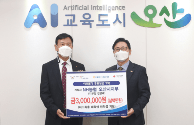 오산시는 NH농협 오산시지부가 지난 5일 관내 어려운 대학생을 위해 장학금 300만 원을 기탁했다고 8일 전했다.