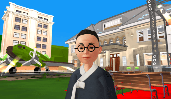 제페토에서 ‘경교장’을 검색하면 이용자 누구나 메타버스 경교장으로 이동할 수 있다. '경교장 월드'에 입장하면 먼저 김구선생님이 귀국 당시 탑승한 C-47 비행기가 보인다. 참여자들은 아바타 김구와 이시영을 맞이한 후, 우측에 마련된 야외행사장에 자유롭게 착석하여 인터뷰 시간을 가진다.