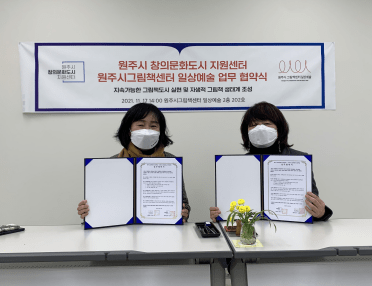 원주시 창의문화도시지원센터와 원주시 그림책센터는 지난 17일 서재결혼식을 갖고 그림책 업무협약을 체결했다.