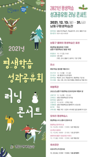 인천광역시 남동구는 13일부터 3주간 올 한해 평생학습 성과를 공유하는 ‘러닝콘서트’를 개최한다고 밝혔다.