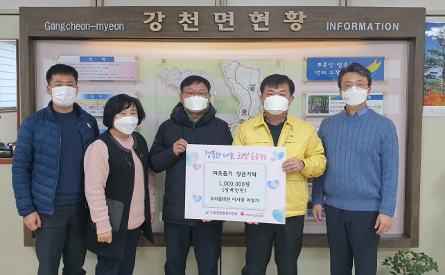 여주시 북내면 소재 우리들의원에서 지난 13일 동절기 소외계층을 위해 사용해 달라며 이웃돕기 성금 100만원을 강천면장에게 전달했다.