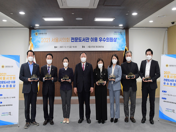 서울특별시의회 김인호 의장(더불어민주당, 동대문구 3)은 지난 12월 17일 2021년 서울특별시의회 전문도서관 이용 우수의원으로 '경만선(더불어민주당, 강서3), 김경우(더불어민주당, 동작2), 김소영(민생당, 비례), 김용석(더불어민주당, 도봉1), 김정태(더불어민주당, 영등포2), 문병훈(더불어민주당, 서초3), 오한아(더불어민주당, 노원1), 이경선(더불어민주당, 성북4), 이호대(더불어민주당, 구로2), 임종국(더불어민주당, 종로2), 채인묵(더불어민주당, 금천1)'의원 11명을 선정하여 시상하였다.