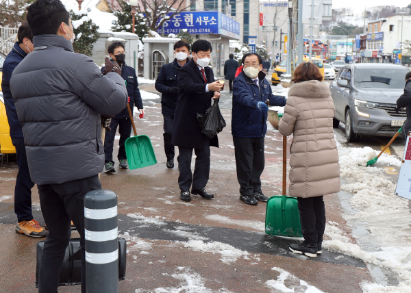 영광군은 지난 25, 26일 크리스마스 연휴 간 내린 눈으로 인한 주민들의 통행불편 해소를 위해 전체 공직자들이 시가지 눈 치우기 작업에 나섰다.
