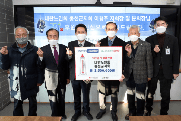 대한노인회 홍천군지회는 1월 4일 홍천군청을 방문, ‘희망 2022 나눔 캠페인’ 이웃돕기 성금 250만원을 기탁했다.