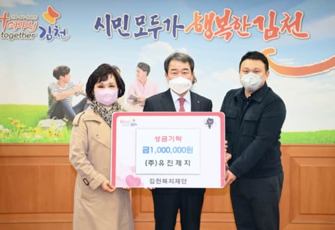 ㈜유진제지(대표 김은숙)는 이번에 100만원을 김천복지재단으로 기부했다.