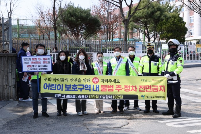 고양시 일산동구청은 지난 22일 개학기를 맞아 어린이들의 안전한 통학로 조성을 위해 냉천초등학교 및 백신초등학교 어린이보호구역에서 하교하는 초등학생과 학부모를 대상으로 어린이보호구역 불법 주·정차 금지 캠페인을 실시했다.