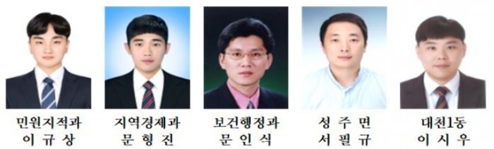 대천1동 이시우 주무관은 제20대 대통령 선거 시 5개 투표구 1만3642명의 선거인명부 작성 및 15개소에 선거벽보 첩부, 6600세대에 투표안내문과 선거공보 발송 등 완벽하게 추진하였고, 보령형전시민재난지원금 접수 시 거동이 불편한 이동약자를 위한 찾아가는 신청 서비스를 추진해 총 1만3500명이 신청 접수하는 등 적극행정을 실천한 공로가 인정됐다.
