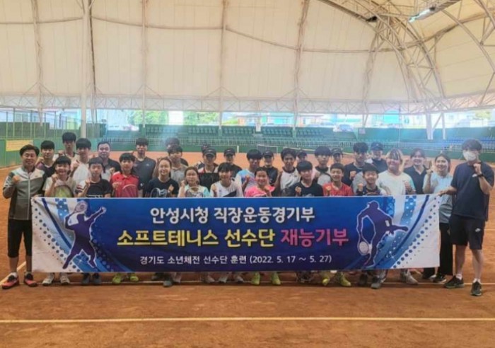 안성시청 직장운동경기부 소프트테니스 선수단은 지난 17일부터 국제정구장에서 전국소년체육대회에 출전할 초등부 및 중등부 선수단 20명을 대상으로 대회 준비를 위한 훈련에 도움을 주고 있다.