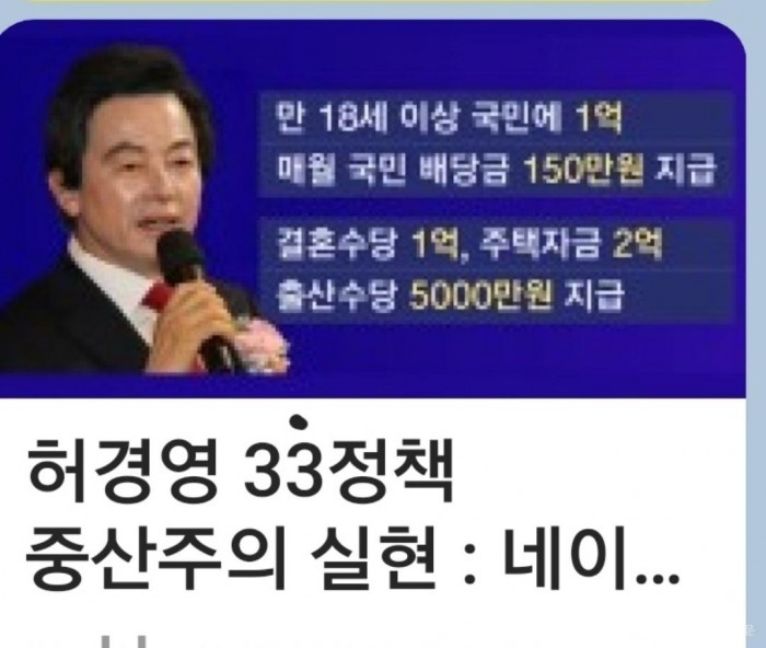 여론에 의하면 여든 야든 신뢰가 가는 정치인이 없다고들 한다. 그래선지 요즘 허경영이 옳았다는 말이 유행어처럼 나돌고 있고 33정책의 선호도가 갈수록 확산되고 있는 분위기다. 때맞춰 거리감이 있었던 언론인으로부터의 반응이 지면을 도배하고 나섰음으로써 여론의 중심에 서게 됐다. 왜냐하면 며칠 전, 한 유력 일간지는 칼럼을 통해 “허총재가 2007년 대선에서 출산수당과 결혼수당을 주자고 공약했지만 당시만 해도 저출생이 국가소멸 문제가 될 줄은 몰랐으며 그가 ‘나라에 돈이 없는 게 아니라 도둑이 너무 많다.’라고 했을 때 딴 나라 얘기인줄 알았다.”라고 했기 때문이다. 그만큼 예산 도둑질이 심했음을 질타하는 내용이고 보면 정치인으로서의 허총재를 다시 보지 않을 수가 없다.