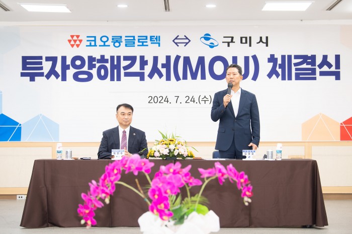 구미시는 24일 시청 대회의실에서 김장호 구미시장, 방민수 코오롱글로텍㈜ 대표이사를 비롯한 관계자 20여 명이 참석한 가운데 투자양해각서 체결식을 개최했다.