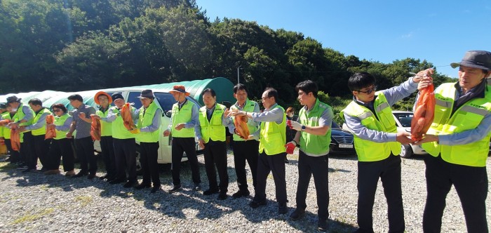 시내버스기사님이 직접심은 옥수수, 직접수확하여 울산관내 소외지역 옥수수 나눔 행사후 기념촬영