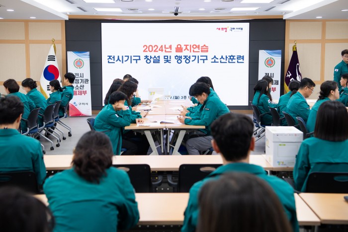 구미시는 20일 을지연습 2일차를 맞아 재난안전상황실에서 전시현안 과제토의를 실시했다.