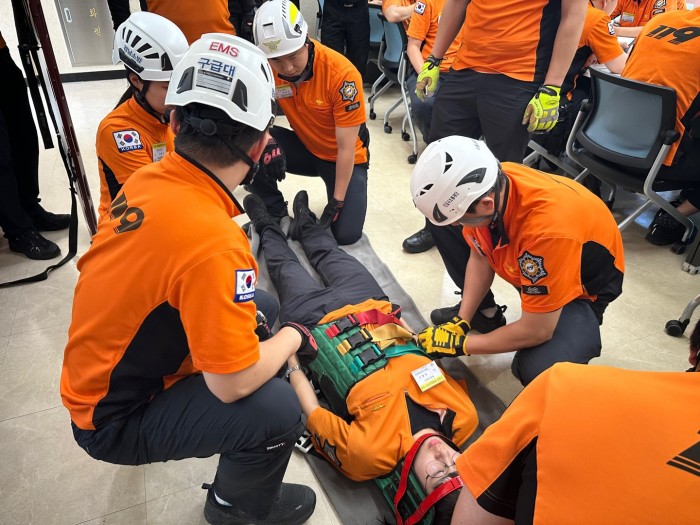 특히 환자 운반 실습을 중점적 실시해 환자 운반 시 구급대원의 부상을 유발하는 습관을 객관적 관찰(영상 촬영)을 통해 보완하고, 구급 활동 시 급격한 움직임으로 인한 부상을 막기 위한 스트레칭·근력 단력법도 실습했다.