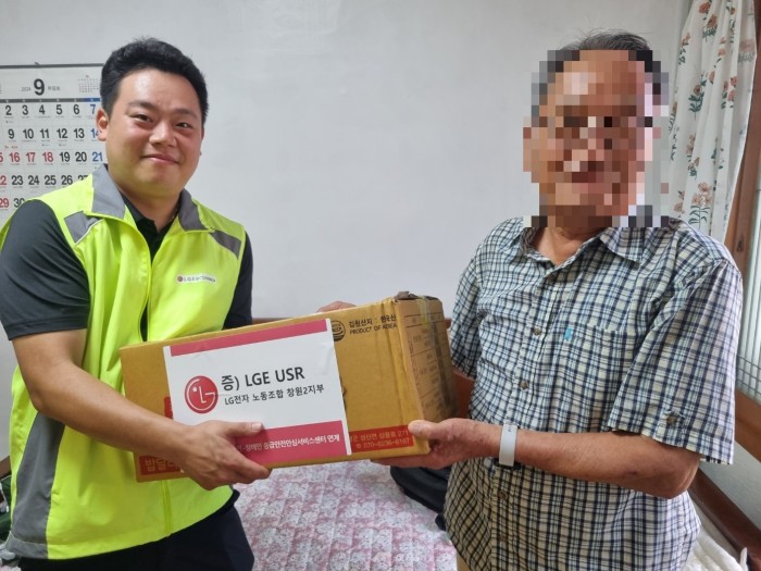 ‘LG전자 노동조합 창원2지부’USR 봉사단(봉사단 대표:김창옥 지부장)은 9월 10일 마산합포구에 위치한 창원시 독거노인‧장애인 응급안전안심서비스 센터(마산종합사회복지관 운영)에 노후화된 에어컨 수리 활동을 하고 추석맞이 식품 키트를 홀로 어르신 60가정에 전달했다고 밝혔다.