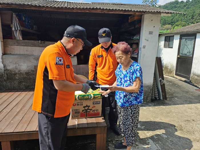 소방서는 위문 대상자를 직접 방문하여, 위로금과 쌀, 라면 등 생필품을 전달했다.
