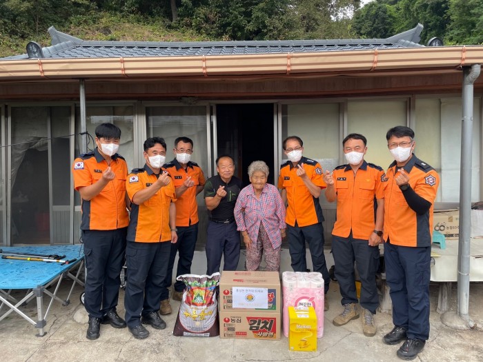 119산불특수대응단은 지난 11일 추석 명절맞이 봉화상설시장을 찾아 장보기 행사를 실시한 후 나눔문화 확산을 위해 소외된 이웃을 방문했다.