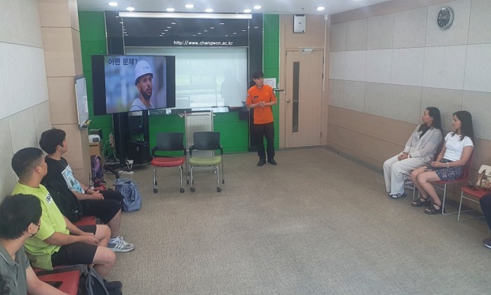 창원대학교 다문화진흥원을 방문해 한국어학당 외국인을 대상으로 소방안전교육을 실시(사진/의창소방서)