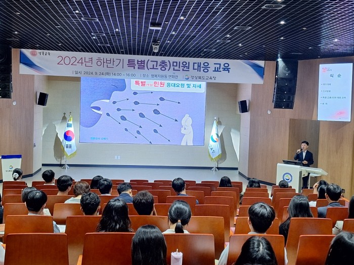 경북교육청(교육감 임종식)은 24일 본청 행복지원동 연화관에서 본청․직속 기관․교육지원청 민원 업무 담당자 100여 명을 대상으로 특별(고충)민원 대응 교육을 실시했다.