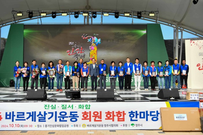 바르게살기운동영주시협의회(회장 박용성)는 지난 10일 영주풍기인삼축제장 주무대에서 바르게살기운동을 활성화시키고 회원들 간 결속력을 다지기 위해 ‘2024 바르게살기운동 회원 화합 한마당 행사’를 개최했다.