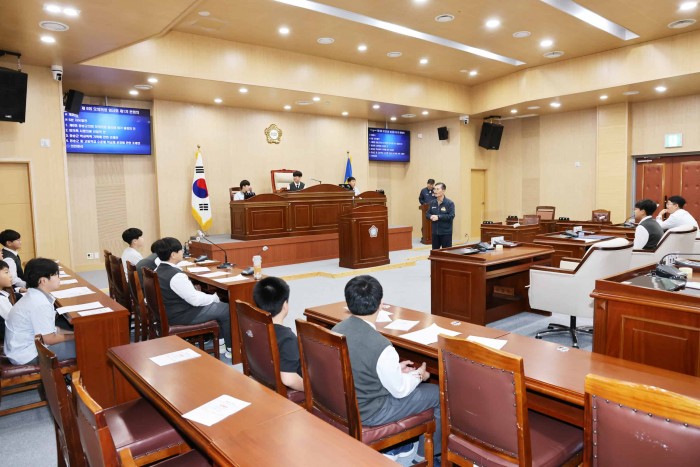 심상휴 의장은 환영사에서 “오늘 하루는 지역민의 목소리를 대변하는 의원이 되어 지방의회가 어떤 방식으로 주민들의 불편을 해소하고 의안을 결정하는지 이해할 수 있는 시간이 되길 바란다.”며, “의회에서의 경험이 학생 여러분이 장래에 훌륭한 사람이 되는 밑거름이 되고, 풀뿌리 민주주의 발전에 도움이 되기를 희망한다.”고 말했다.