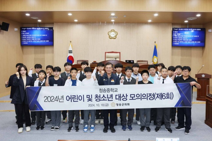 청송군의회는 지난 10월 18일 청송중학교 1학년 학생들을 대상으로 제6차 ‘어린이 및 청소년 대상 모의의정 체험’을 실시했다고 밝혔다.