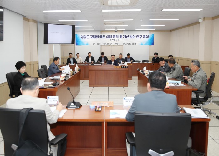 먼저 보고회에서는 연구 용역 업체로부터 △영양군 인구 고령화 정책 환경분석 △영양군의 고령화 분야별 상세 재정운영 현황 분석 △영양군 고령화 관련 주요 사업 내용 및 실적 분석 등에 대한 보고를 청취한 후, 이어진 질의 응답 시간에 보고 내용에 대한 다양한 의견수렴과 추후 연구 방향을 논의했다.