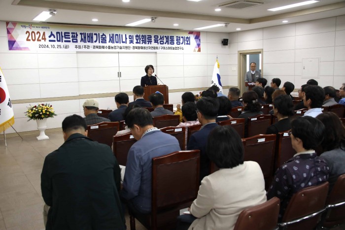 경상북도농업기술원은 지난 25일 구미스마트농업연구소에서 시설원예 농가의 경쟁력 향상과 화훼 우량품종 평가를 위한 ‘스마트농업 기술 세미나 및 화훼 품평회’를 개최했다.