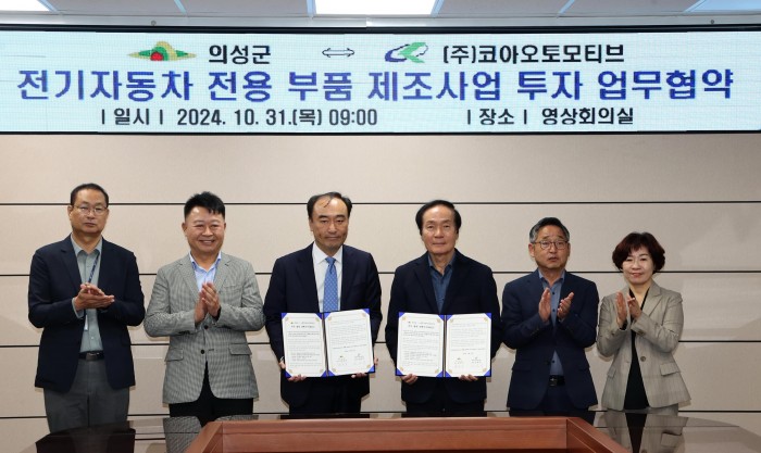 의성군(군수 김주수)은 10월 31일(목) ㈜코아오토모티브(대표 김원석)와 전기자동차 전용 부품 제조사업 투자 업무협약(MOU)을 체결했다고 밝혔다.