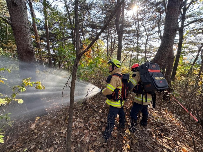 경상북도 119산불특수대응단은 11월 5일 봉화군 봉성면 봉화향교 인근 산악지대에서 산불진화를 위한 새로운 전술을 도입하고, 유관기관과의 공조체계를 구축하기 위해 ‘2024년 하반기 산불대비 합동소방훈련’을 실시했다.