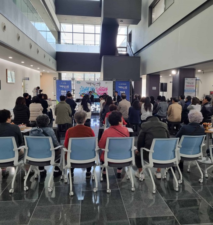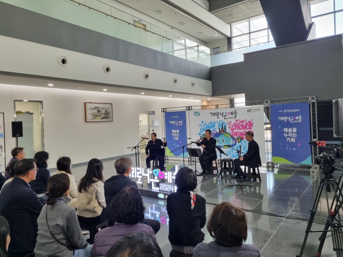 ‘거리로 나온 예술’ 공연은 경기도의 아마추어 예술인 및 동호인들이 음악, 무용 연극, 다원예술 등 다양한 장르의 공연예술 활동을 하는 사업이다. 인근 지역주민과 연구원 직원 50여 명이 참석한 가운데, 클라리넷 음악가 ‘트리오 N’의 연주로 공연이 시작됐다. 트리오 N은 클래식과 영화음악을 주제로 한 ‘해설이 있는 클라리넷’을 연주해 관객의 큰 호응을 얻었다. 이어서 재즈 밴드 ‘쇼루식구’가 재즈 클라리넷과 플루트, 브라질 전통 타악기 빤데이루를 활용한 브라질 음악 ‘쇼루’를 선보였다. 권보연 경기도보건환경연구원장은 “인근 주민들과의 소통을 통해 연구원이 지역사회에 기여할 수 있는 기관으로 자리매김하는 계기가 되었으면 한다”고 말했다. 경기도보건환경연구원은 앞으로도 다양한 기관과 협력하는 한편, 지역주민과의 소통도 강화할 예정이다. 지역주민과 함께 소통을 할수 있는 계기가 되다.