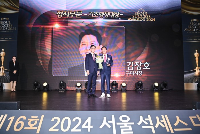 구미시가 지난 25일 서울 그랜드하얏트 호텔에서 열린 「제16회 2024 서울석세스대상」 정치 부문에서‘기초행정대상’을 수상하며 전국 지방자치단체의 모범으로 우뚝 섰다.