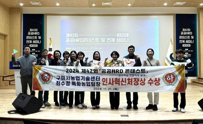 최수정 팀장은 지난 11월 21일, 인사혁신처가 주최한 제42회 공공HRD 콘테스트에서 교수학습(전문직무)분야 인사혁신처장상을 수상하며 우수한 강의 기법과 연구성과를 다시 한번 입증했다. 이는 지난 5월 제16회 농촌진흥공무원 강의기법 경연 대회의 우수상 수상에 이은 영예다.