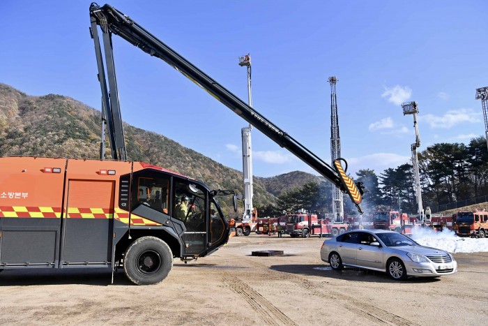 이번 시연회는 특수목적 소방차의 신속한 동원과 운용 능력 강화를 목표로 실시했다.