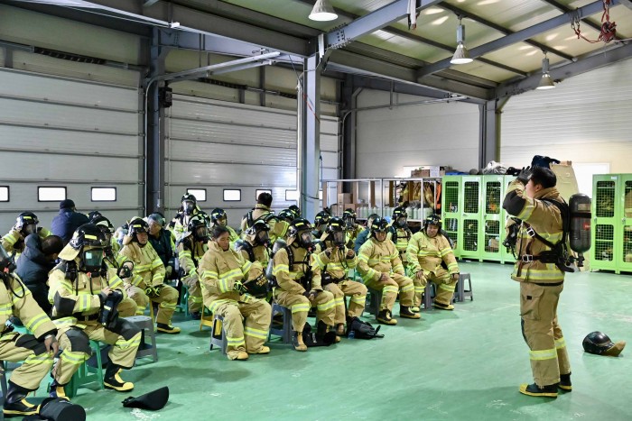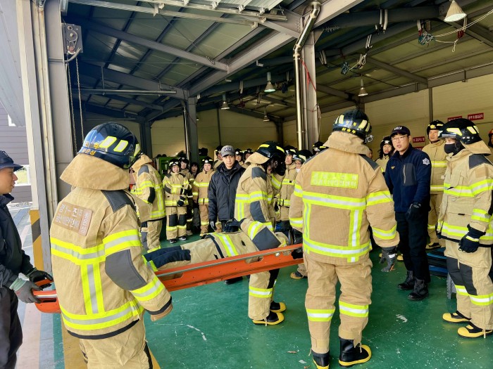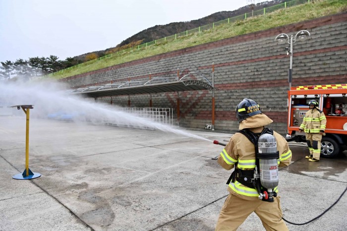 주요 내용으로는 ▲방화복 착용, 수관 연장 요령, 관창 조작법 ▲공기호흡기 착용, 미분무 차량 조작 ▲지하 연기 피난, 화재 형상 체험 ▲응급환자 들 것 운반법 등이었다.