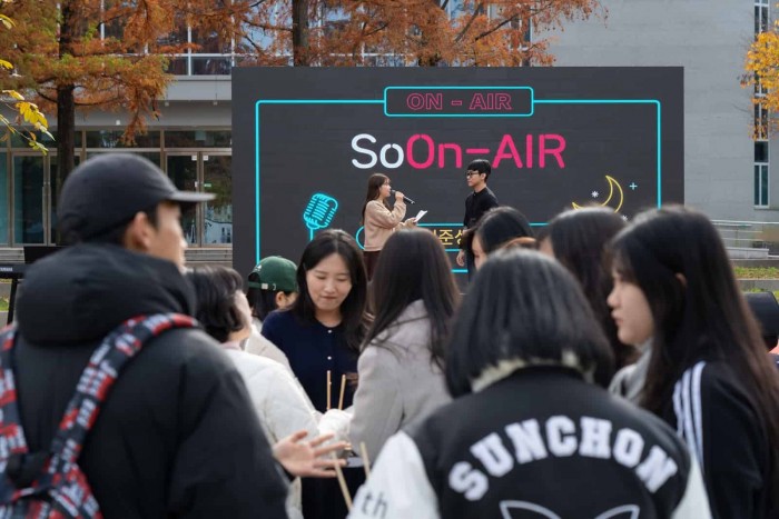 2024 가요제 ‘SoOn-AIR’는 ‘Soon’(곧)과 ‘On-AIR’(방송 중)를 결합한 것으로, 학생회관 리모델링 후 새롭게 출발하는 대학 언론사의 라디오 복귀를 상징적으로 표현했다. 이를 기념하여 라디오 공개방송 형식으로 진행된 이번 행사는 참가자의 사연과 노래가 어우러지는 독특한 형식과 독창적인 공연을 선보이며 관객들의 뜨거운 호응을 얻었다.