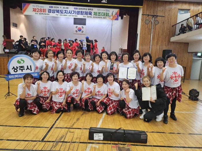 상주시 화동면 생활체육회(회장 김숙자)가 지난 11월 30일 경상북도 김천시 김천대학교 체육관에서 개최된 제28회 경상북도지사기 생활체육 체조대회에서 생활체조부문에서 준우승을 수상했다.