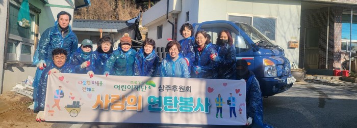 상주시 계림동(동장 채인기)에서는 12월 10일(화) 초록우산 어린이 재단 상주후원회(회장 손경화) 회원 약 10명이 참여한 가운데 계림동 관내 저소득가정에 연탄 1,000장을 기부하는 행사를 가졌다.