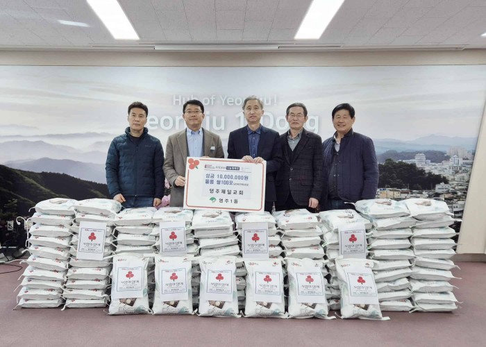 영주제일교회(담임목사 금교성)는 18일 영주1동행정복지센터를 방문해 ‘희망2025 이웃돕기’ 성금 1000만 원과 백미 10kg 100포를 함께 기탁했다.