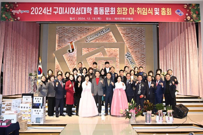 구미시여성대학 총동문회(회장 김순단)는 지난 19일 제이컨벤션웨딩홀에서 동문회원 등 200여 명이 참석한 가운데 2024년 회장 이․취임식 및 총회를 개최했다.