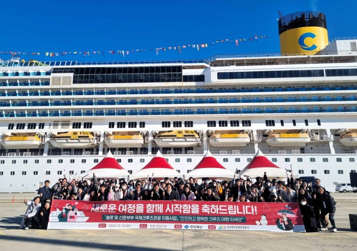 경상북도는 24일 포항 영일만항에서 경북도 ‘만남주선’ 사업에서 선발된 솔로 커플과 신혼부부의 국제크루즈 여행 축하 행사를 했다.