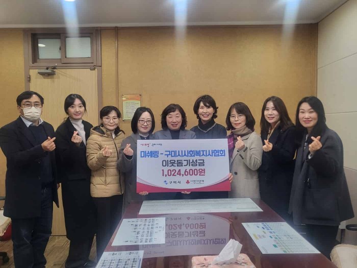 구미시는 지난 6일 구미지역병원 의료사회복지사 모임 ‘미쉐링’(회장 변정숙)이 이웃돕기 성금 102만 4,600원을 기탁했다고 밝혔다.
