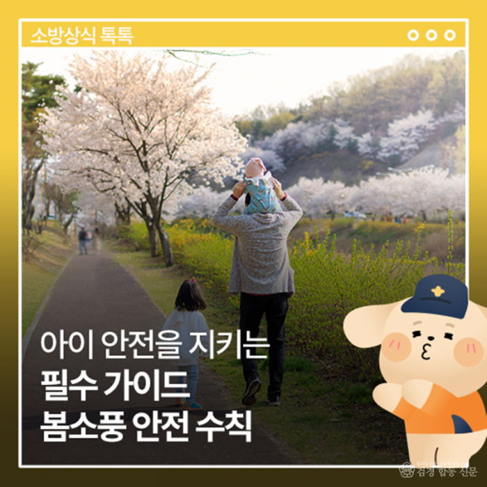 이에 안전한 봄나들이 안전 수칙에는 ▲날씨 확인 후 대비 물품 준비 ▲미아 방지용품 착용 ▲장소별 안전 수칙 숙지 ▲비상약품 및 응급 키트 지참 ▲보호자 연락망 공유 등이 있다. 특히, 차량 이동 시에는 ▲전 좌석 안전띠 착용 ▲졸음운전 방지 ▲차량 점검 등 교통안전 수칙을 반드시 지켜야 하며, 아이들의 전원 승·하차 여부도 철저히 확인해야 한다.