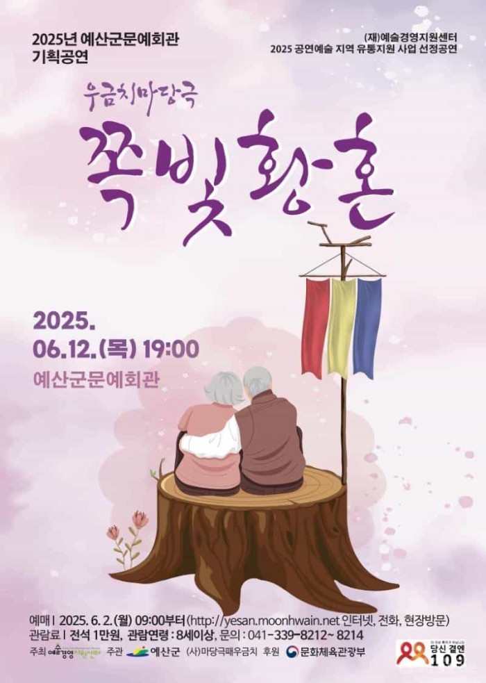 예산군문예회관은 (재)예술경영지원센터의 ‘2025 공연예술 유통지원 사업’ 공모에 선정된 작품 중 두 번째 공연으로 마당극 ‘쪽빛황혼’을 선보이며 관객들에게 특별한 문화체험을 제공한다.