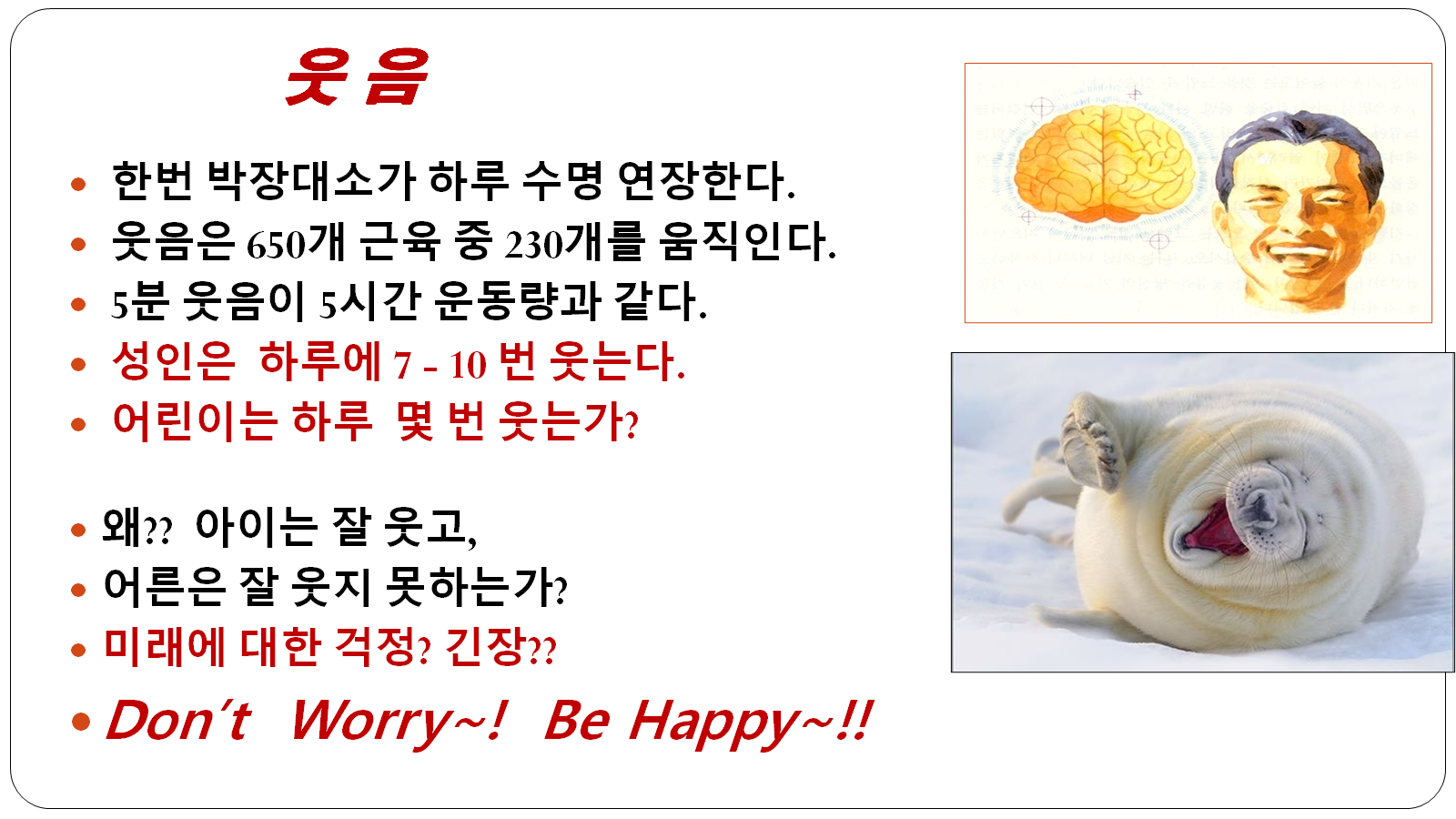 웃음이라는 행동을 통해 감정과 생리 상태를 거꾸로 바꿀 수도 있는 존재다.