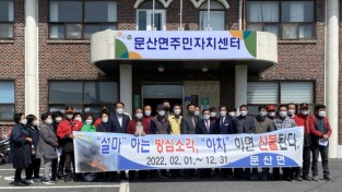 서천군 문산면, 주민자치회원과 봄철 산불예방 캠페인서천군 문산면은 이달 1일 봄철 산불발생 위험이 높은 시기를 맞아 문산면 주민자치회 회원 30여명과 함께 산불예방 캠페인 실시하고, 주민자치회원들 각 주변 이웃에게 논·밭두렁, 영농부산물, 쓰레기 소각금지 등 산불예방 홍보에 적극 동참해 줄 것을 당부했다.