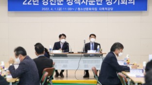4월 1일 강진군은 2022년 정책자문단 정기회의를 개최해 인구감소와 지방소멸 대응 정책에 대해 의견을 나눴다.강진군은 지난 1일 청소년문화의집 다목적강당에서 2022년 정책자문단 정기회의를 개최했다. 이날 회의는 정책자문단 위원 및 관계자 30여 명이 모여 인구감소 위기 극복과 지방소멸 위험 대응 정책에 대해 심도 있는 의견을 나눴다. ▲생활인구 유입 활성화, ▲강진 이미지 마케팅, ▲일자리창출을 통한 인구유입, ▲광역단위 교통망 조성 등 다양한 의견이 모아졌으며, 군은 대책 회의에서 나온 의견들을 구체화 시켜 신속하게 정책...