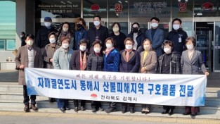강원도 동해시 산불피해지역 구호물품 등 지원김제시는 지난 3월 5일 강원도에서 발생한 산불로 피해를 입은 자매결연도시 동해시를 돕기 위해 구호물품과 성금을 전달했다고 밝혔다. 이번 산불로 인해 특별재난지역으로 지정된 동해시와 오랫동안 자매결연을 맺어온 김제시는 3월 8일 동해시청을 방문해 누룽지 500박스, 수건 500장, 지평선쌀 400kg, 조청유과 등 물품과 성금 800만원을 전달했다. 이중 누룽지 300박스는 호경건설에서 200박스와 여성단체협의회에서 100박스를, 성금은 새마을연합회 및 산림조합에서 800만원을 기탁하였...